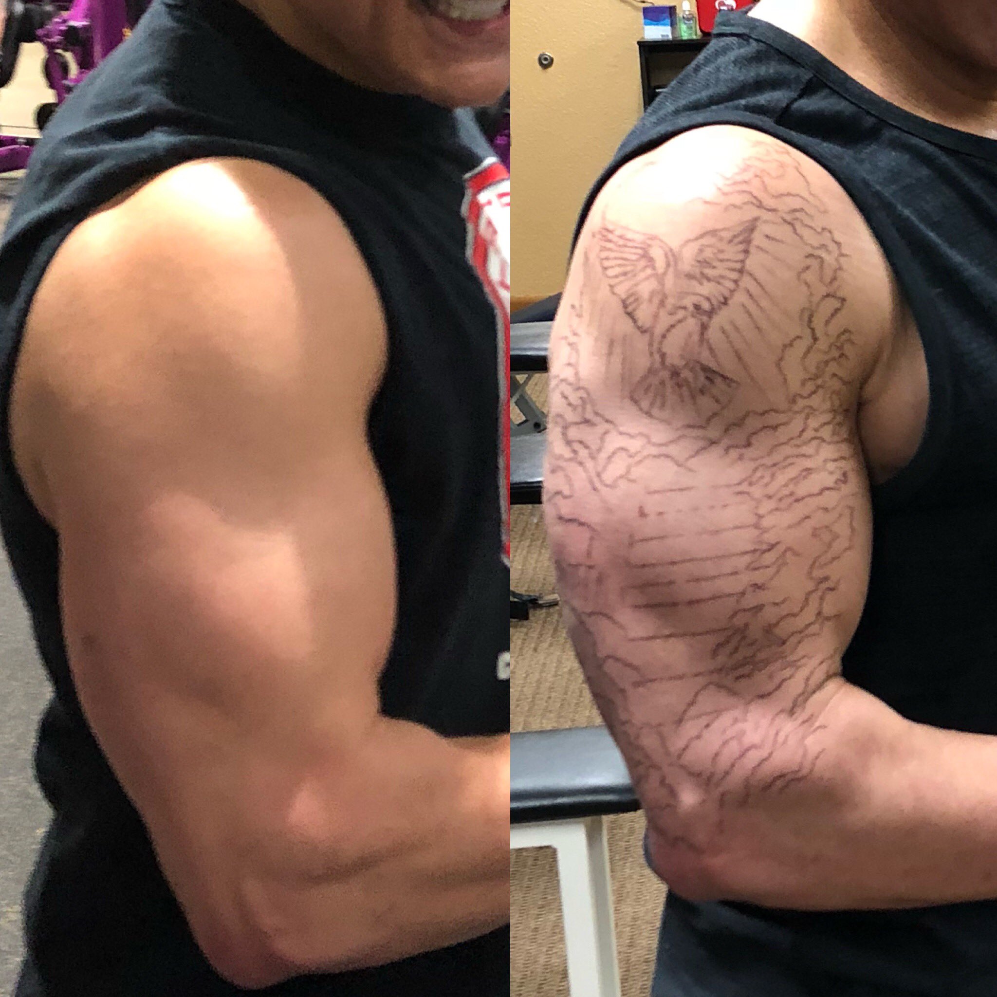 35) god sends out his spirit by projecting his energy to any place to accomplish his will. Religious tattoos on the chest. The purple bird is the holy spirit at jesus' baptism.