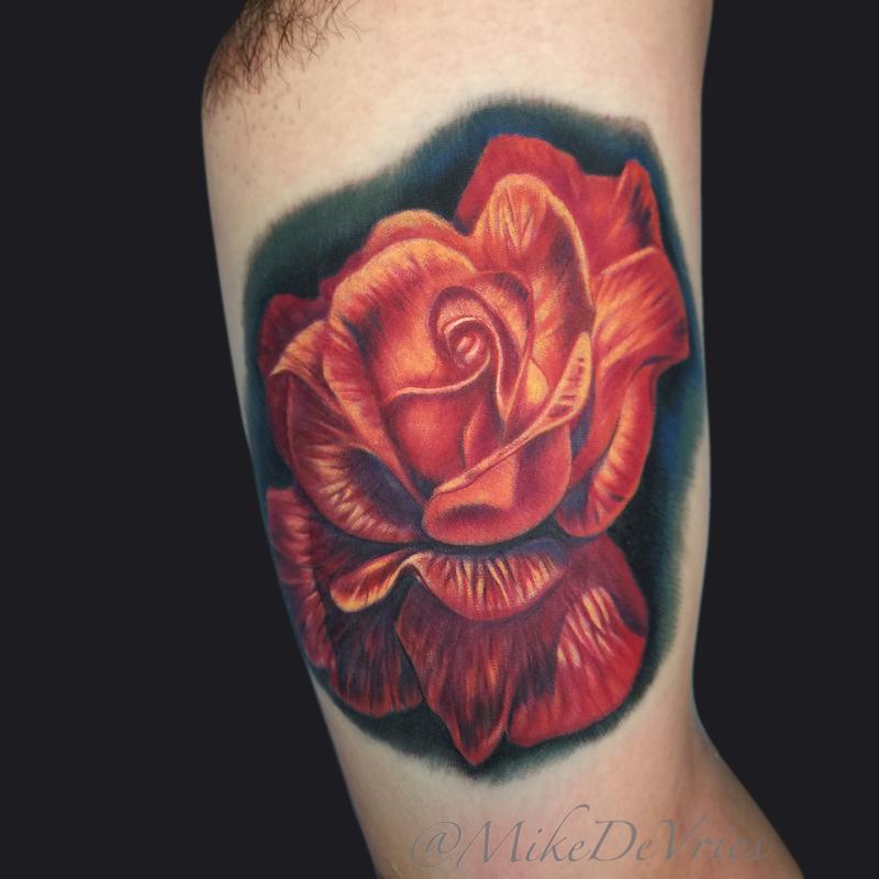 A beautiful design of a large single rose. For men it's a reminder that just as the rose is beheld in infinite colors, shapes, and connotations, your rose tattoo is unique to. Rose tattoos will never get old. A rose tattoo designed underside of the forearm.