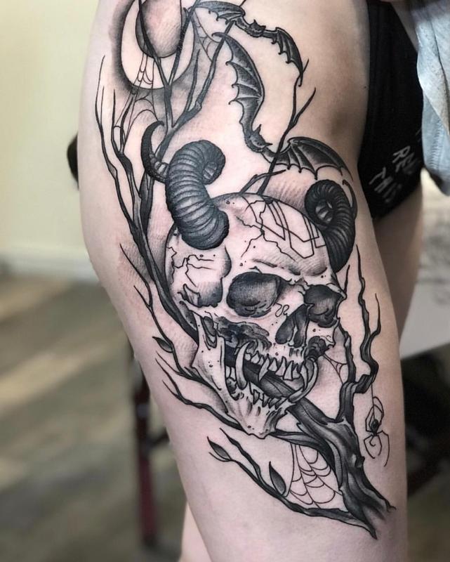 Where there is life, there will also be death, and so roses and skulls are a popular theme for both males and females! The common tattoo motif combining a dead tree and a human skull represent the link between life and death. Another realistic tattoo with plenty of details. Tree of life with reflection tattoo on right half sleeve.