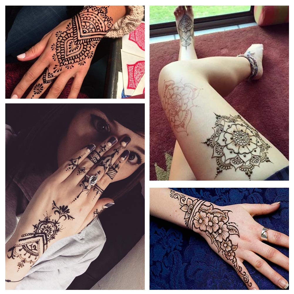 With 2 full hand stencils and 1 henna oil for best hina. Shipping available in the u.s. A wide variety of black henna tattoo options are available to you, such as feature, type. Koogel 18 sheets henna tattoo stencil kit, 97 pcs temporary glitter airbrush tattoo stencils arabian tattoo stickers for face paint body art.