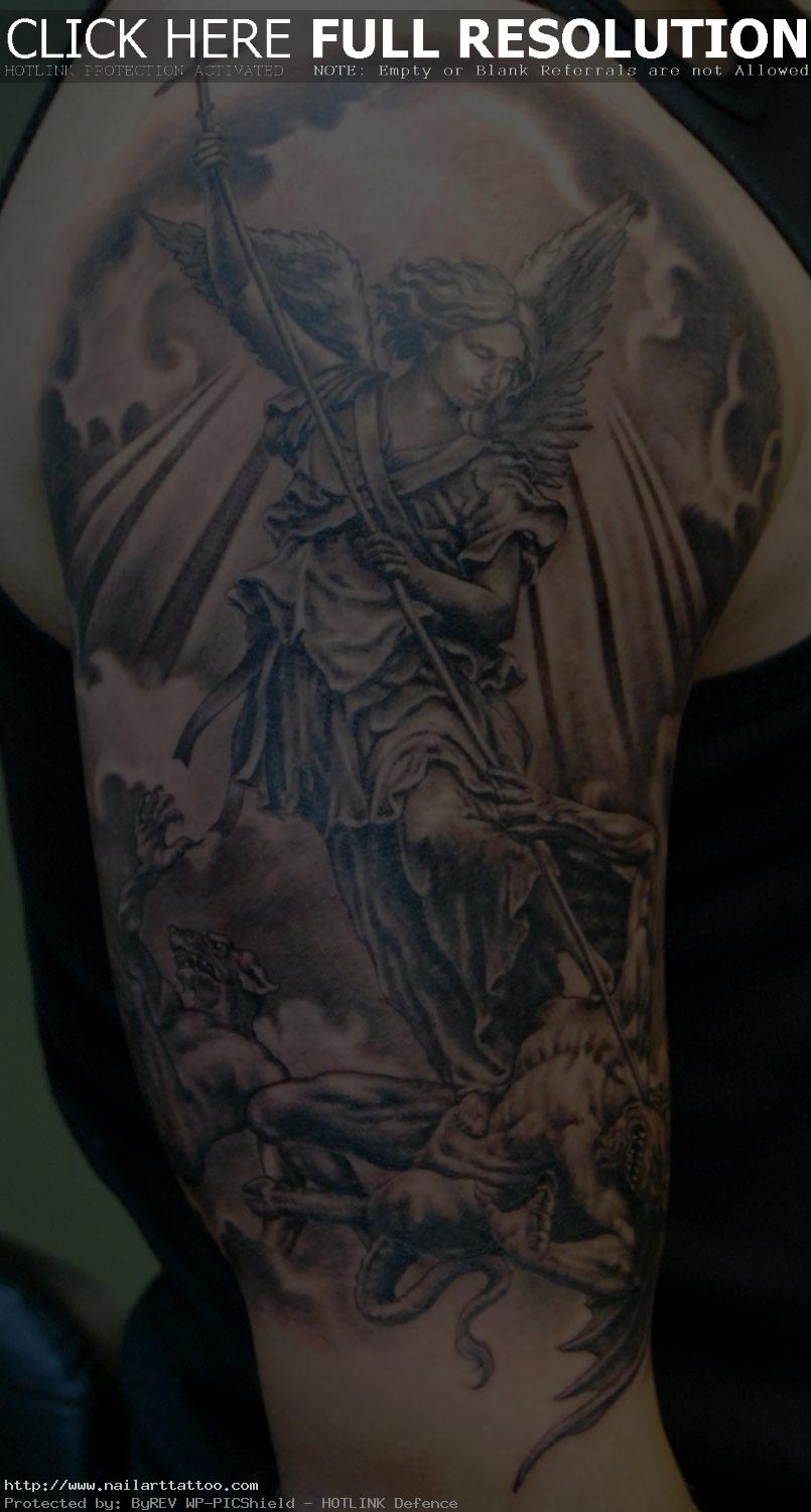 Pics. By the way, a tattoo depicting archangel michael promotes this tattoo trend. Archangel tattoo design idea with veritas banner.
